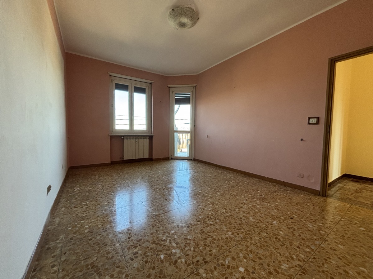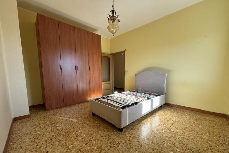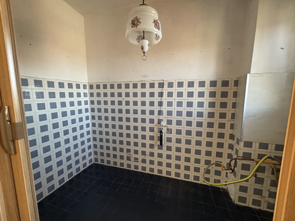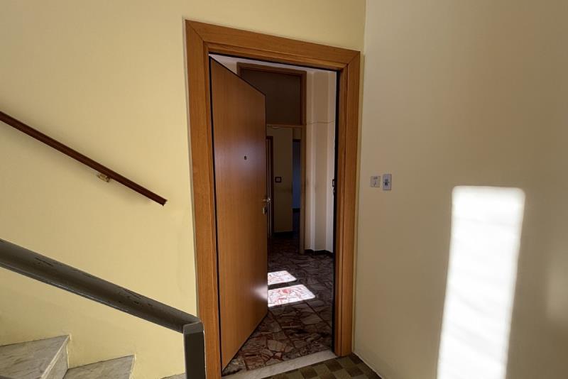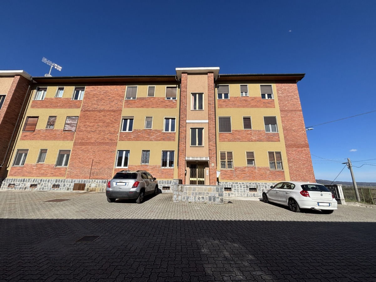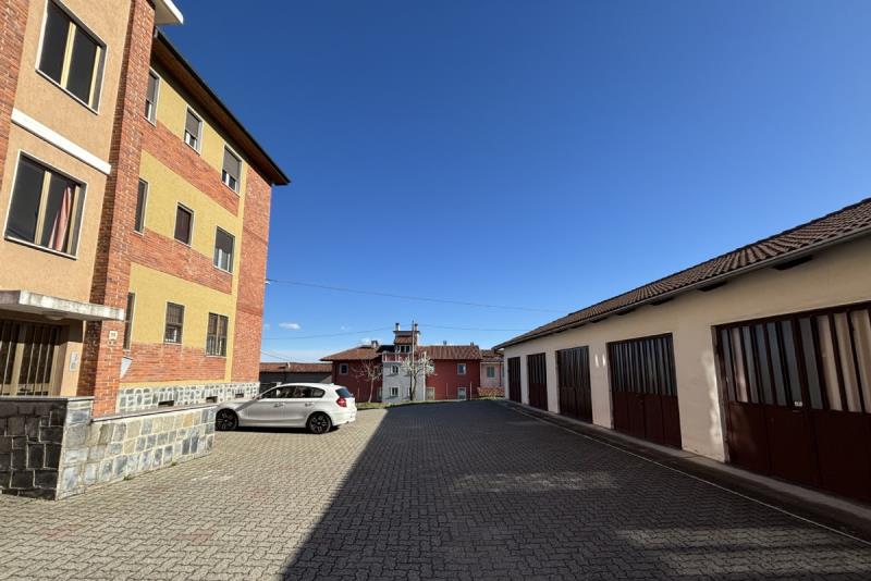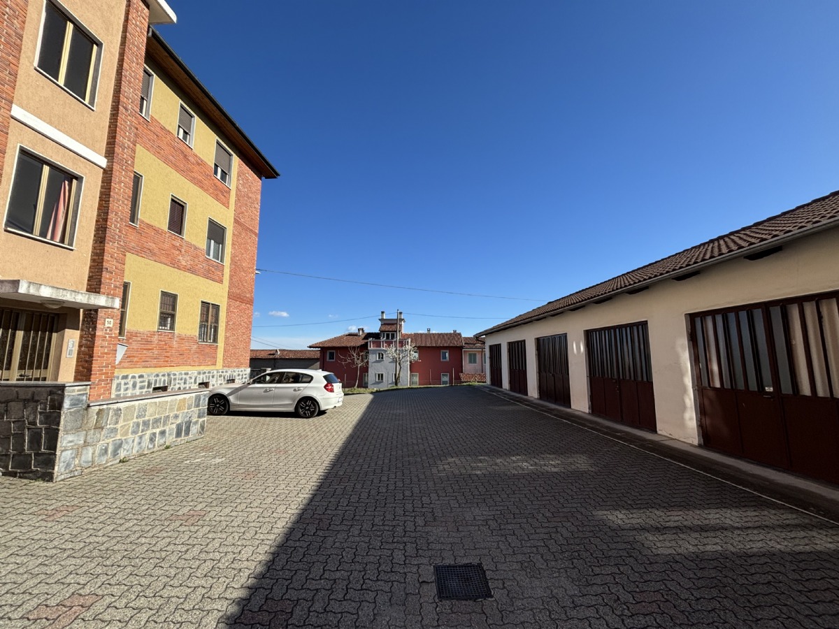 L'abitazione è composta da: ingresso su un ampio disimpegno, soggiorno con accesso al balcone, cucinino, corridoio, due camere da letto, ripostiglio e bagno. Completano la proprietà: la cantina al piano seminterrato e un ampio box auto singolo con orto retrostante, cortile e giardino condominiale. Posti auto liberi.