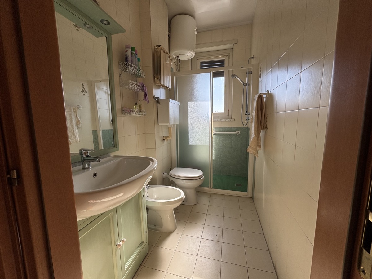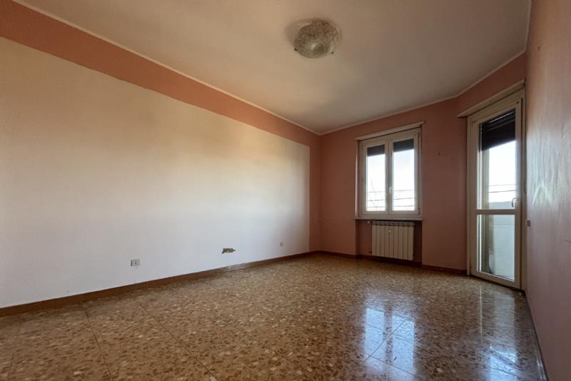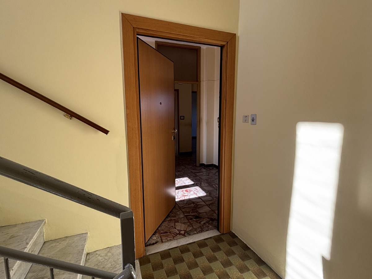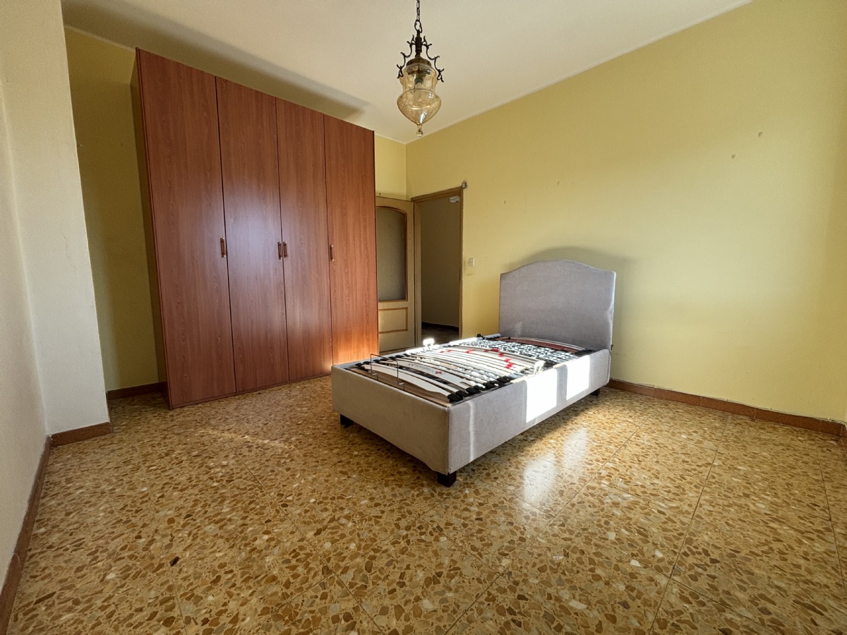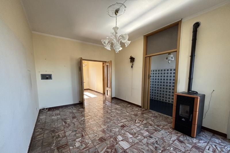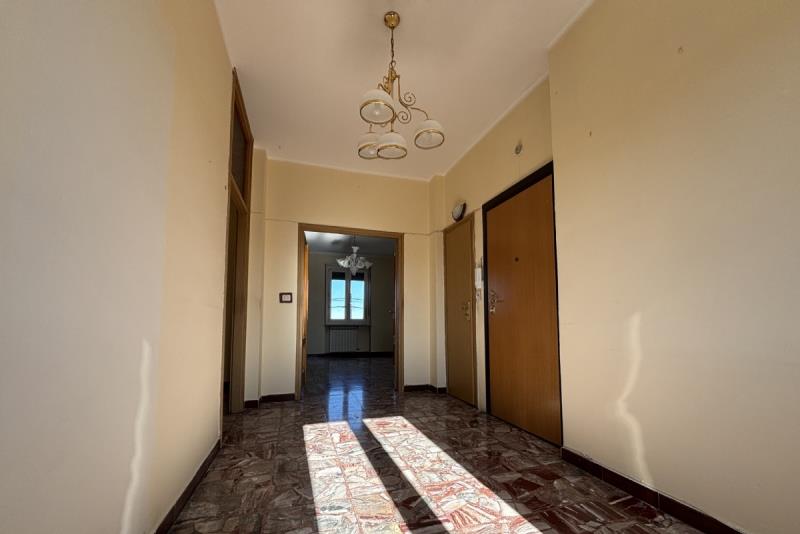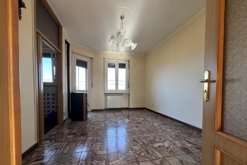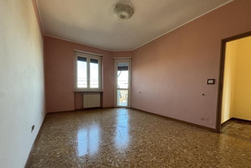 L'abitazione è composta da: ingresso su un ampio disimpegno, soggiorno con accesso al balcone, cucinino, corridoio, due camere da letto, ripostiglio e bagno. Completano la proprietà: la cantina al piano seminterrato e un ampio box auto singolo con orto retrostante, cortile e giardino condominiale. Posti auto liberi.