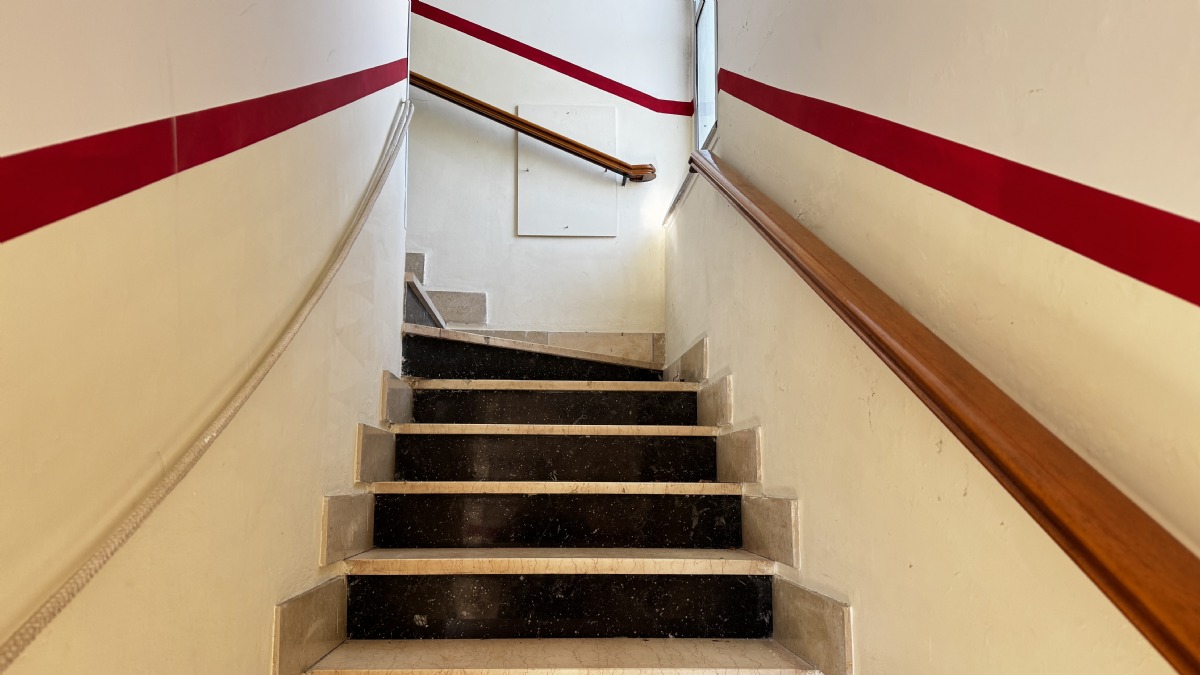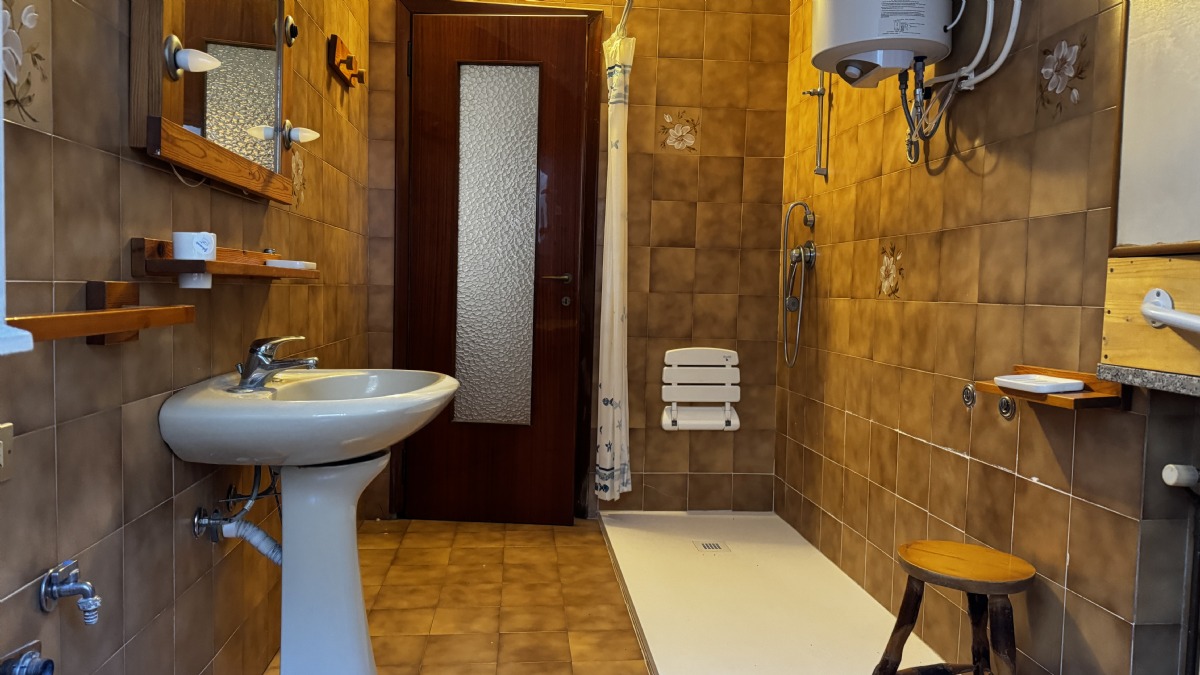 Al primo piano, troviamo il secondo alloggio così composto: cucina, soggiorno, veranda molto grande, tre camere, 1 bagno e due balconi. (124 mq)