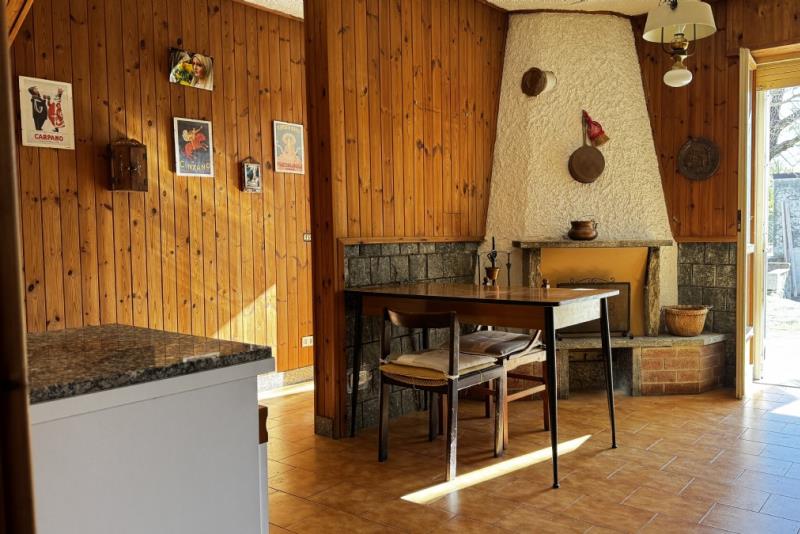 Al piano terra, sono presenti cucina abitabile con camino, soggiorno, disimpegno, due camere, bagno, zona lavanderia, usata anche come cantina, box auto doppio, locale caldaia e portico. (110 mq)