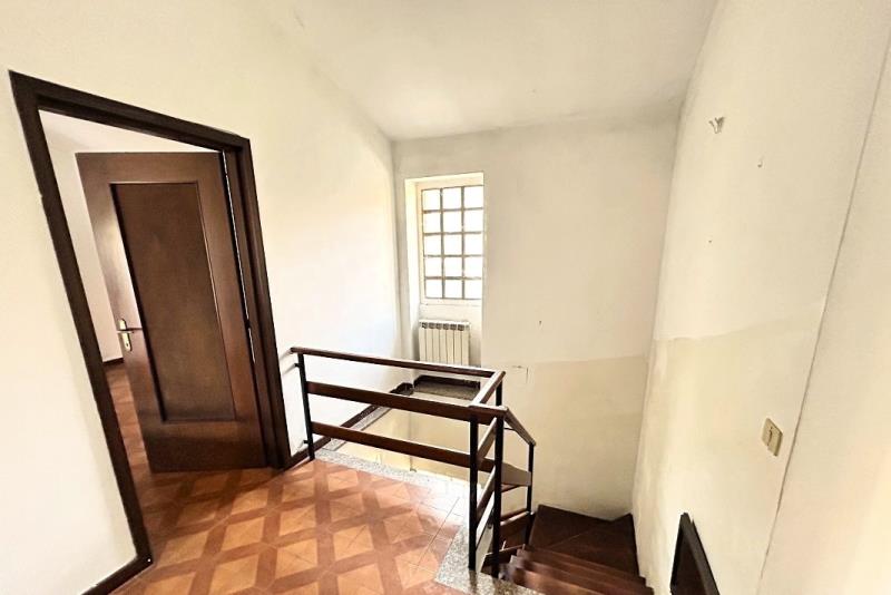 Al piano terra troviamo il box auto di circa 20 mq, collegato tramite porta interna all’ abitazione, un vano attualmente adibito a cucina e la scala interna di collegamento ai piani superiori.